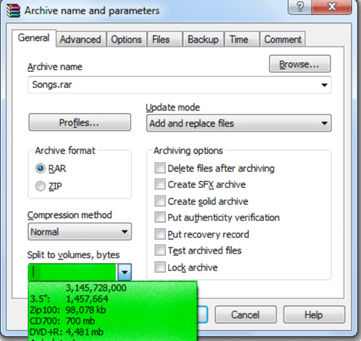 - Setelah itu, pada bagian Archive name anda bisa mengatur nama file yang akan dibagi. Setelah itu pada bagian Split to volumes, size, anda bisa mengatur ukuran file setelah dibagi misalnya jika file anda lebih dari 3 GB, anda bisa memilih 500 Mb per bagian atau sesuai keinginan anda. Setelah itu klik OK.