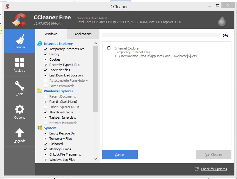 Selain dengan menggunakan aplikasi bawaan windows disk cleanup, anda juga dapat membersihkan cache di laptop menggunakan apilkasi CCleaner, caranya adalah sebagai berikut: