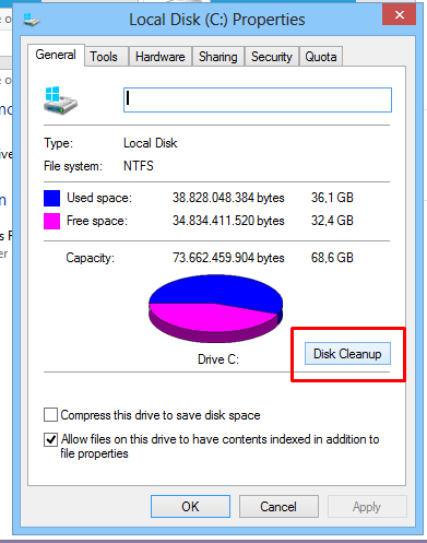 Salah satu fasilitas untuk membersihkan cache di laptop sudah disediakan oleh windows sendiri melalui aplikasi disk cleanup. Disk cleanup dapat menghapus beberapa macam file sampah yang ada pada hardisk di windows anda. Untuk membersihkan cache di laptop, anda perlu melakukan langkah berikut :