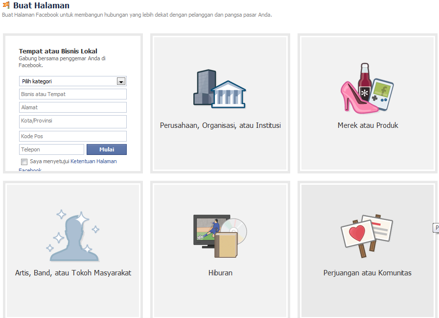 2. Langsung ke halaman ini  http://www.facebook.com/pages/create.php bagi anda yang belum punya community page / fans page