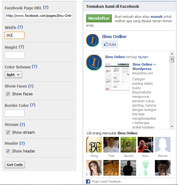 - Silahkan berkunjung kesini http://developers.facebook.com/docs/plugins/ Kemudian Pilih Like Box