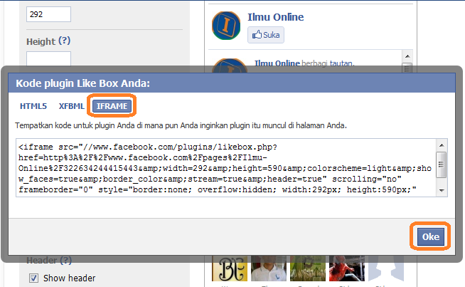 Tahap selanjutnya adalah Cara Membuat like This Box Facebook di Blog / Website Kita :