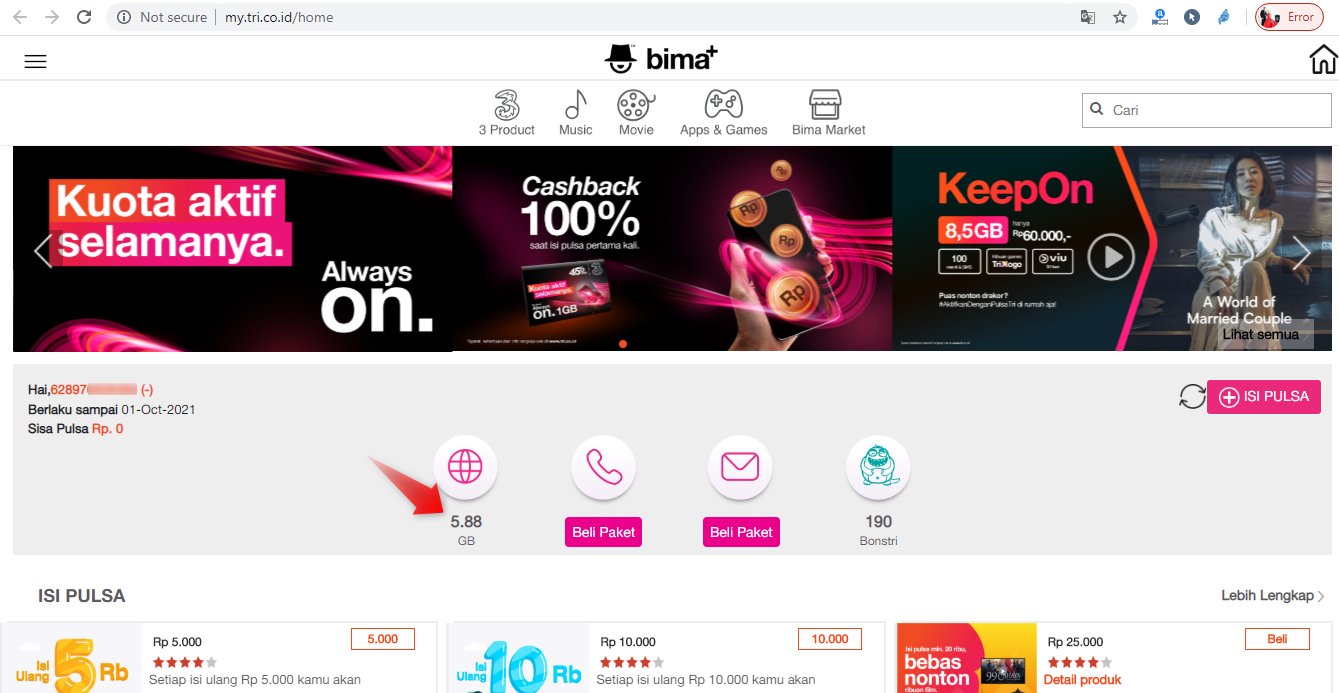 2. Cek Kuota Internet 3 Menggunakan Web 3 (Tri)