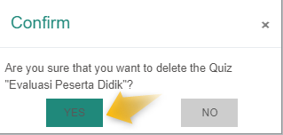 - Maka akan muncul kotak box Are you sure that you want to delete the Quiz, pilih Yes