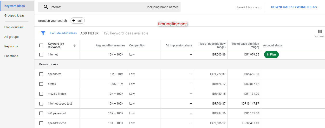 Adapun tool yang free lainnya yang bisa anda coba ialah google keyword planner, yang memang disediakan oleh google untuk bisa menganalisa keyword, dengan berbagai fitur yang menarik. Mengenai alamatnya dan cara penggunaanya kalian bisa mencarinya langsung di google dengan mengetikkan google keyword planner, dan silahkan login menggunakan akun google kalian ya.