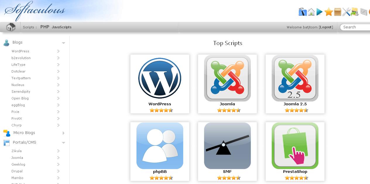 - Setelah masuk ke halaman Cpanel langkah selanjutnya anda bisa langsung menuju ke fantastico atau beberapa kasus menggunakan software softaculous, pada bagian Software cari Menu Fantastico/Softaculous, kemudian klik Menu Protal/CMS kemudian pilih WordPress