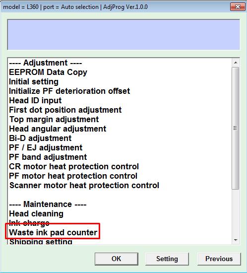 - Lalu klik menu Particular Adjusment Program lalu pilih Waste Ink Pad Counter