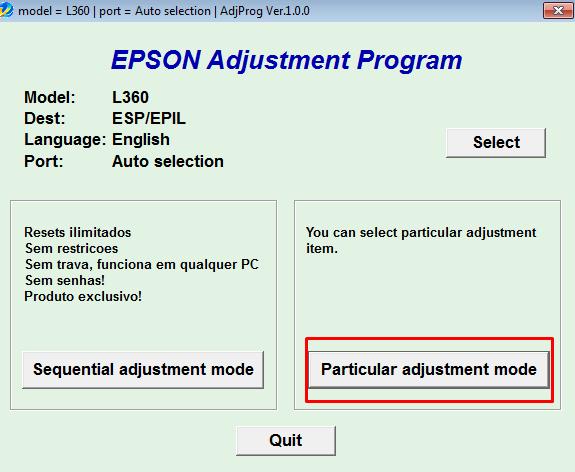 - Maka akan muncul tampilan Epson Ajusment Program