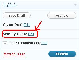 - Sebelum artikel /postingan di publish, atur terlebih dahulu pada bagian kanan, klik Edit pada Visibility : Public