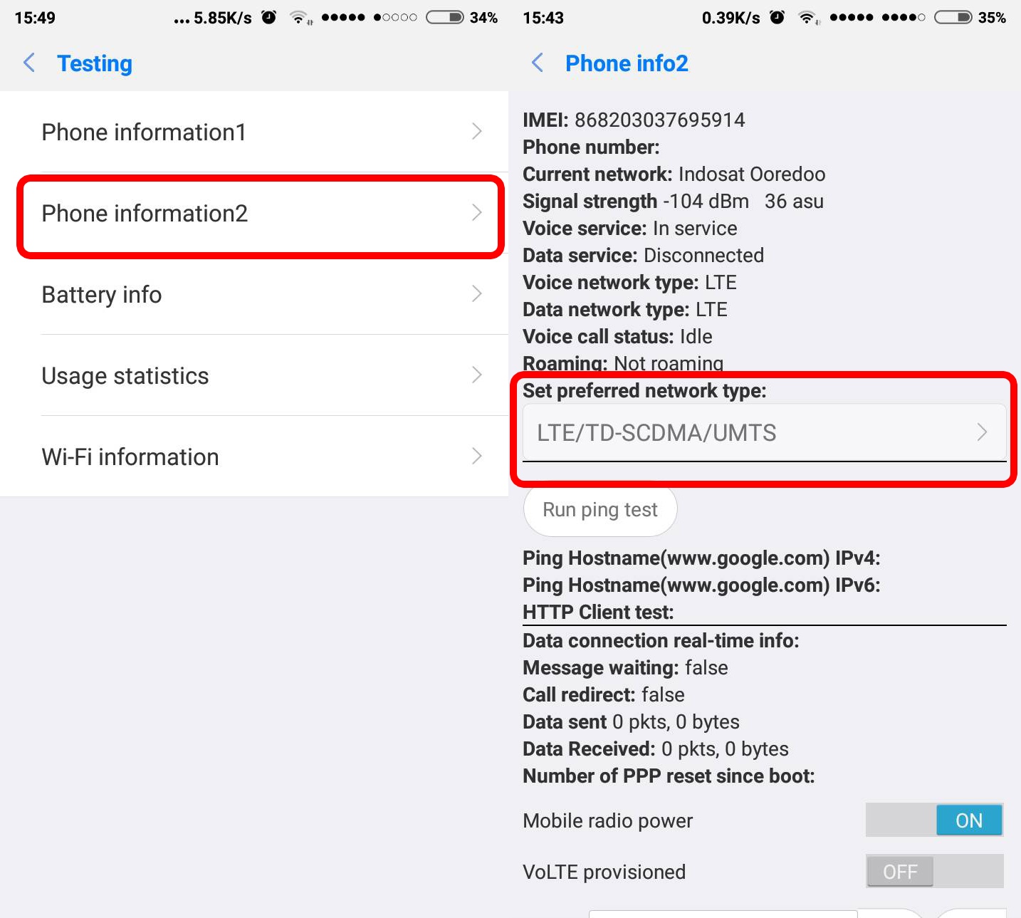 Langkah berikutnya adalah tap pada pilihan “Preferred Network Type” dan kemudian pilih “Prefer LTE”