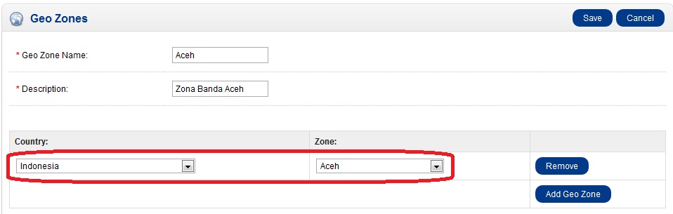 - Karena batasan browser, maka Geo Zones sebaiknya dibuat per kabupaten bukan per propinsi