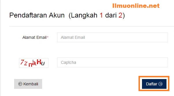- Isikan alamat email anda yang masih aktif, pada kolom chapcha isikan sesuai tampilan chapcha yang ada disisi samping kirinya lalu klik tombol Daftar
