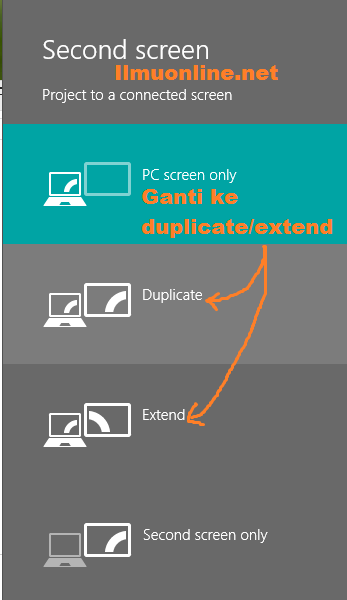 Dengan model extend ataupun duplicate maka akan tampil di laptop maupun proyektor, semoga dengan cara di atas masalah cara koneksi laptop ke proyektor pada windows 8, 10 dan juga windows 7 sudah bisa teratasi.
