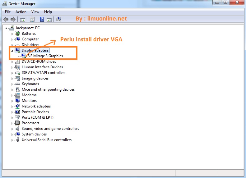 - Pastikan driver VGA juga sudah terinstall di laptop/notebook kamu.
